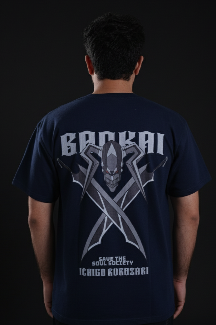 NAVY NIGHTS VIBES: The Bankai Navy tee is straight-up POWER in fabric form. Deep blue tones with oversized streetwear swagger - perfect for those who run the night and own the day. The ultimate blend of comfort and flex. If you know, you know. LIMITED DROP - Don’t sleep on this or you’ll miss out!